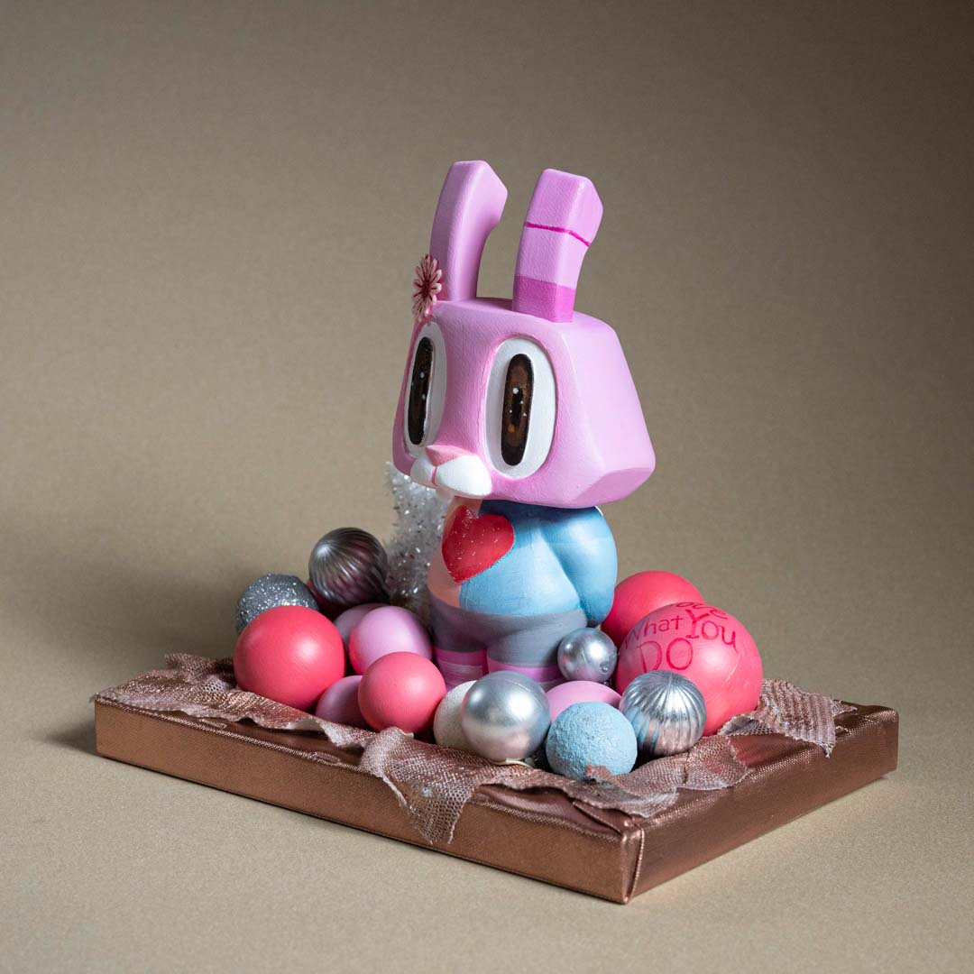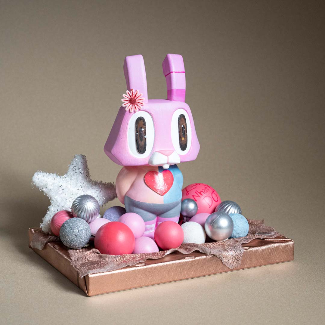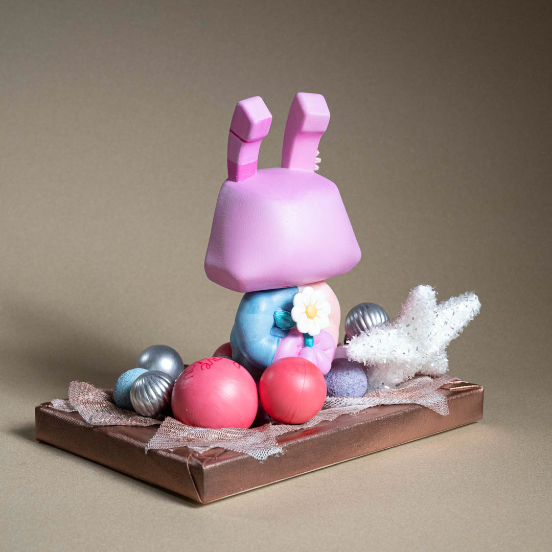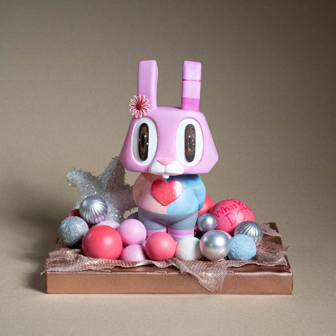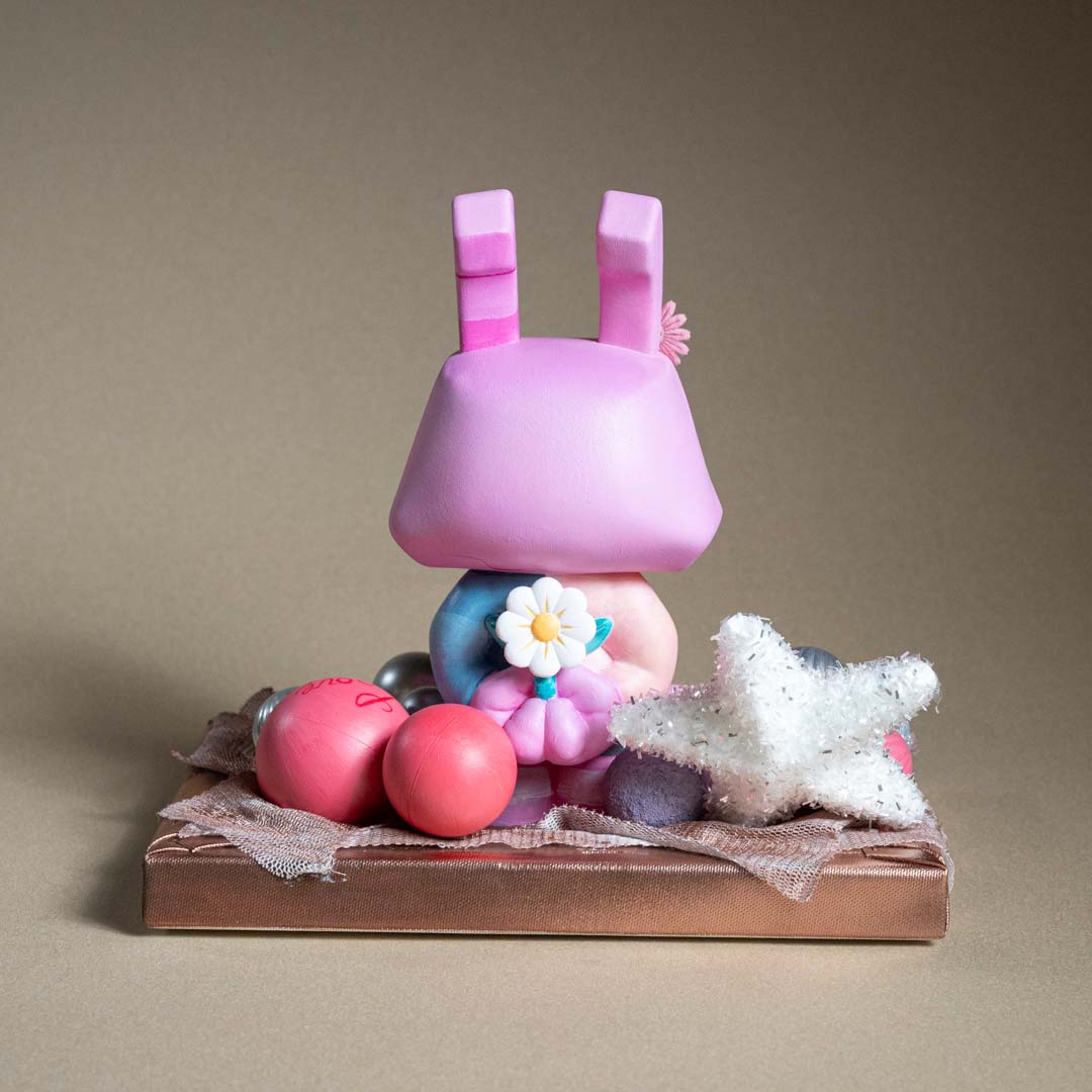 創作理念:靈感來自我心裡那個永遠愛做夢的小女孩。這隻粉色兔子像一個可愛的珠寶盒,裝滿了快樂與希望。我希望它能讓看到的人,都忍不住微笑,暫時忘記煩惱。創作對我來說,是一種讓世界變得更柔軟的方式。