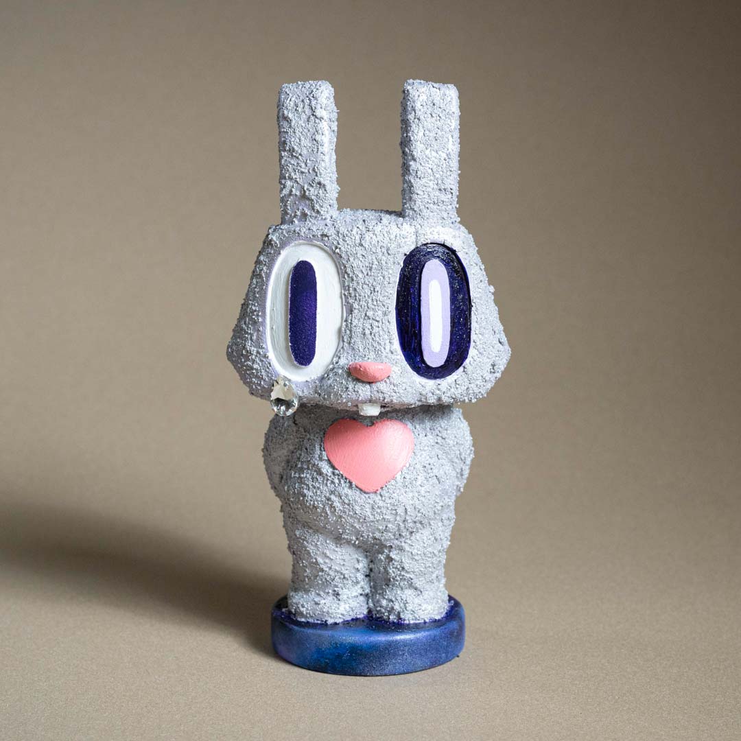 創作理念:一直以來,我很喜歡《馴龍高手》這部卡通,尤其是那段人與不同物種之間相遇相識相惜的過程,這隻外星兔兔,牠的外表奇特、眼神有點怪異,但心卻是粉紅色的。我想傳達「不同」並不可怕,真正的相遇,是願意打開心去理解彼此。就像馴龍高手裡,馴服的不是龍,而是我們對未知的恐懼。每一顆真誠的心,都值得被擁抱。真正的連結,從來不是靠外表的相似,而是心與心的共振。