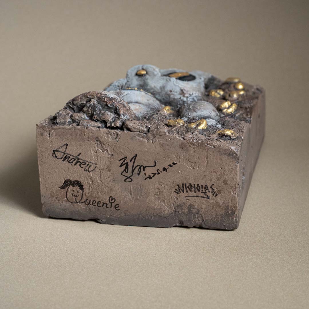 創作理念:我們思索著,要創作出一個特別的場景,能夠結合"棒小兔"、"馬克"與象徵喜氣的"元寶",我們瘋狂的想到了這個考古的挖掘現場。所以當你面對著它,就表示《馬(馬克)上對你吐(兔)錢(元寶)出來》!是不是超級可愛~~也祝福有愛心的你,好運連連。