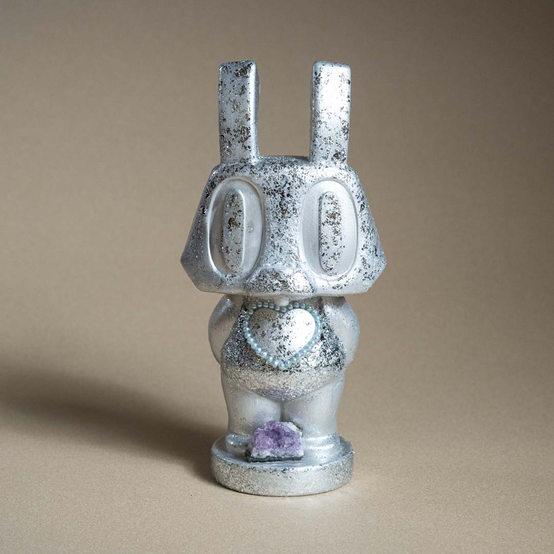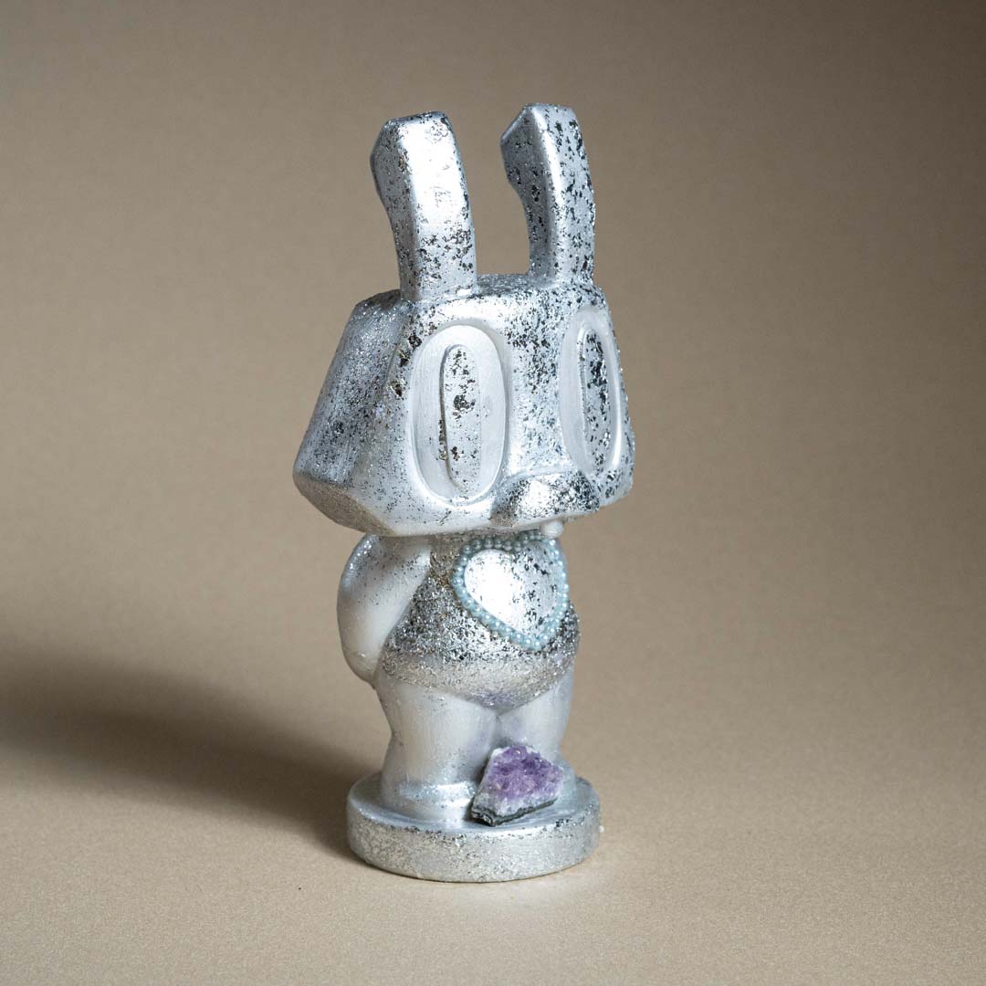 創作理念:唐幼馨的銀輝綴雅:於簡素中見生命真意。銀,是時光沈澱後的溫潤底色,不張揚,卻自有歲月賦予的沈靜力量。將這份簡素鋪陳於棒小兔之上,如同為生命奠定了最本真的基調——沒有濃墨重彩的渲染,卻藏著”返璞歸真”的東方哲思。