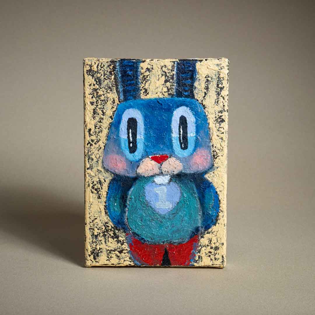 油畫作品:內在的純真與溫暖。鮮豔、充滿活力,胸口的愛心代表著良善的初衷。