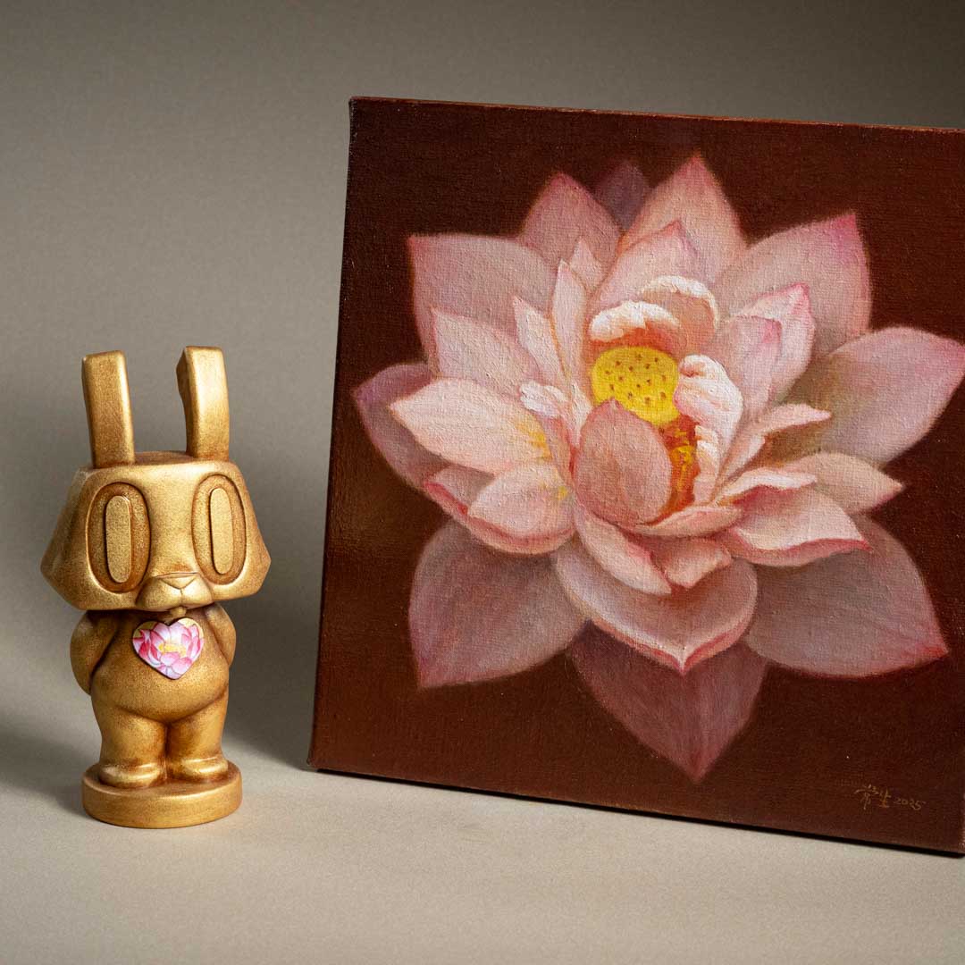創作理念:《荷心力量》「要找回屬於自己的力量。」——這是我的身心靈老師曾對我說過的一句話,深深觸動了我,也成為我創作的啟示。在人生的成長過程中,我們難免經歷不安與迷惘,常常將自我價值寄託於外界的肯定之中——網路上的讚數、他人的認同、物質的充足……然而,當外在回饋未能符合期待時,內心便容易陷入空虛與挫折。那是因為我們將力量交付於外,而忽略了內在本有的光。荷花對我而言,是一個象徵「回歸初心」的重要意象。它是我童年學畫時最早接觸的題材之一,也是一種清淨之心的象徵。荷花出淤泥而不染,綻放於靜水之上,象徵著清淨、重生與明心見性。透過〈荷心力量〉系列作品,我希望引導觀者回望自身的內在世界,從依附外界的尋求中抽離,重新感受那份源自心底的穩定與力量。願這些畫作成為一面鏡子,映照出我們每個人心中那朵仍在綻放的荷花——純粹、自信而自由。