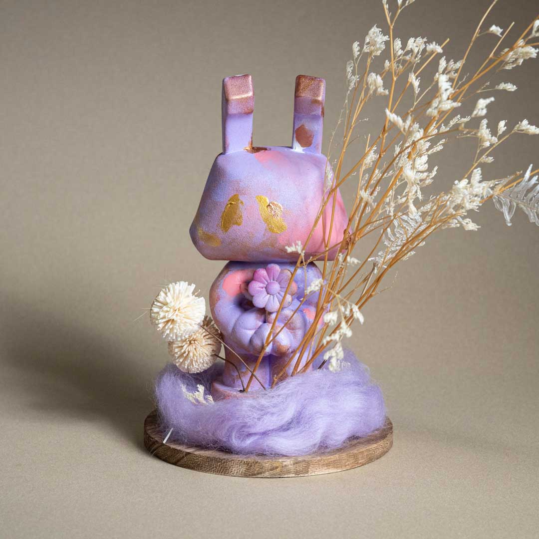 創作理念:《漫步在雲端》創作靈感來自於對「夢想與生活之間的平衡」的思考。以一種種柔軟而自由的狀態——就像漫步在雲端,腳步輕盈卻又真實地踏在屬於自己的人生軌跡上。希望這件作品能傳遞給觀眾一種療癒與放鬆的感受,讓人在欣賞的同時,能重新感受到內在的浪漫與平靜。是一場靈魂的對話,是讓情感、夢想與現實彼此交融的一種藝術表達。《漫步在雲端》採用了印象派與抽象派的上色手法,以粉彩與金色為主調,營造出溫柔而閃耀的氛圍。特別在畫面中融入真花與棉花的材質,並以指紋油彩的方式創造出獨一無二的紋理,象徵每個人都擁有屬於自己的生命印記。希望這幅作品中,能傳達愛與夢想的力量,浪漫的情懷中不放棄追尋自己的夢想。特別想獻給所有仍然相信自由、相信美好、並勇於走在夢想道路上的人們。