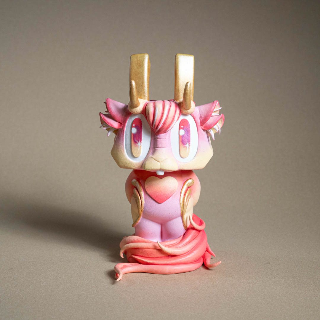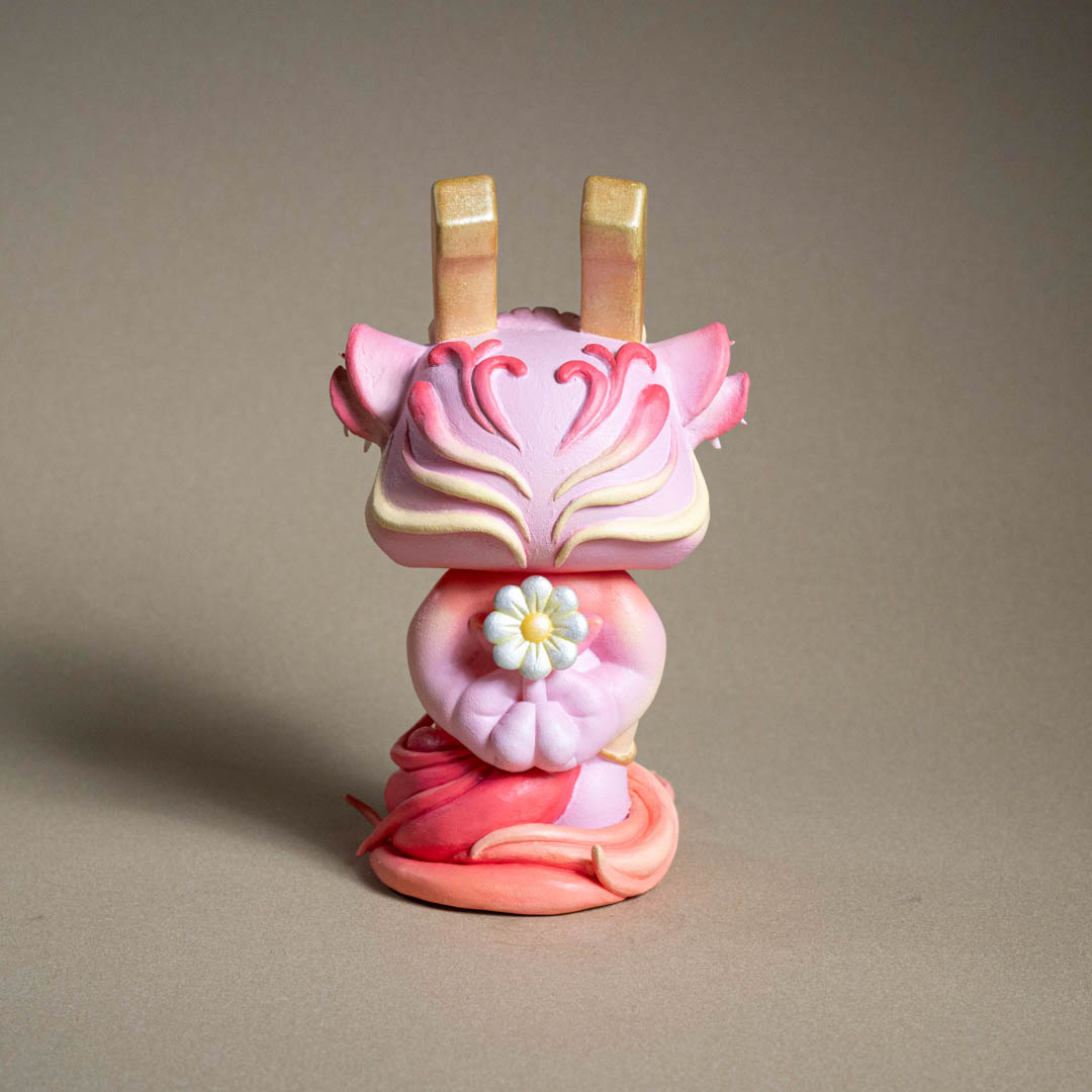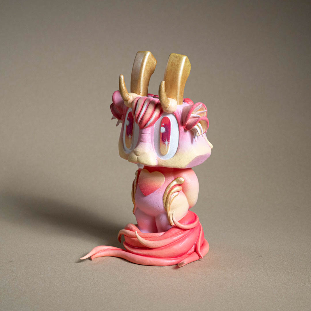 創作理念:在這次萬海慈善「讓愛閃耀」的作品,我為 Bounce 小兔注入了古老神話的意象——姜太公的坐騎「四不像」。作品中,我保留了小兔的天真純粹,卻又賦予牠新的姿態:生出靈動的鹿角、披上勇猛的虎皮,並展開九尾狐的能量之尾。這些元素交織而成,使小兔化為一個嶄新的「四不像」,象徵柔軟與堅毅、勇氣與靈性、神秘與溫暖的共存。正如傳說中的四不像,以穩健與溫順行於世間,寓意和平與多元並存。我希望這件作品能化為一則召喚——提醒我們擁抱差異,去相信愛能以無數形態閃耀;並在多元的交融中,尋回最純粹的力量。