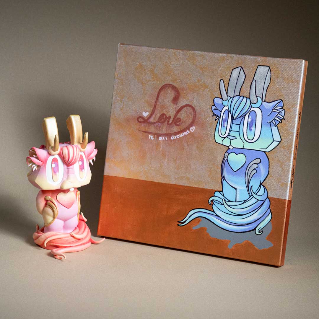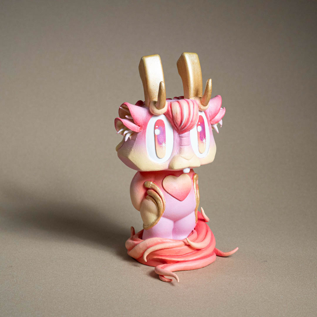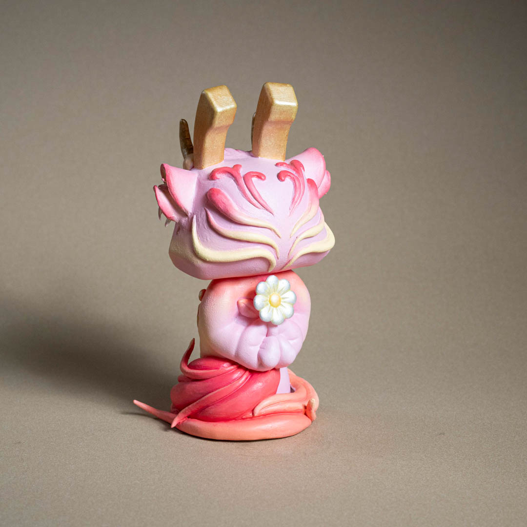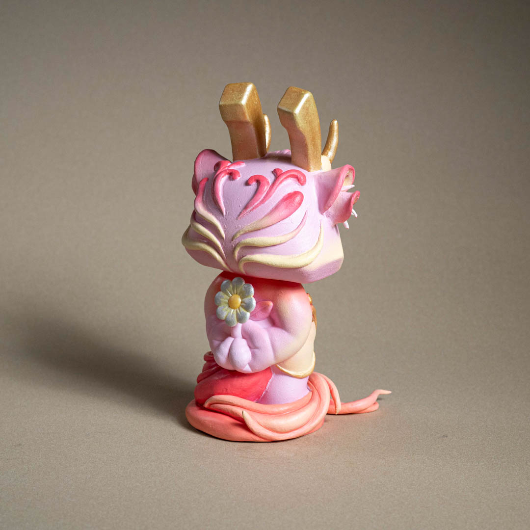 創作理念:在這次萬海慈善「讓愛閃耀」的作品,我為 Bounce 小兔注入了古老神話的意象——姜太公的坐騎「四不像」。作品中,我保留了小兔的天真純粹,卻又賦予牠新的姿態:生出靈動的鹿角、披上勇猛的虎皮,並展開九尾狐的能量之尾。這些元素交織而成,使小兔化為一個嶄新的「四不像」,象徵柔軟與堅毅、勇氣與靈性、神秘與溫暖的共存。正如傳說中的四不像,以穩健與溫順行於世間,寓意和平與多元並存。我希望這件作品能化為一則召喚——提醒我們擁抱差異,去相信愛能以無數形態閃耀;並在多元的交融中,尋回最純粹的力量。